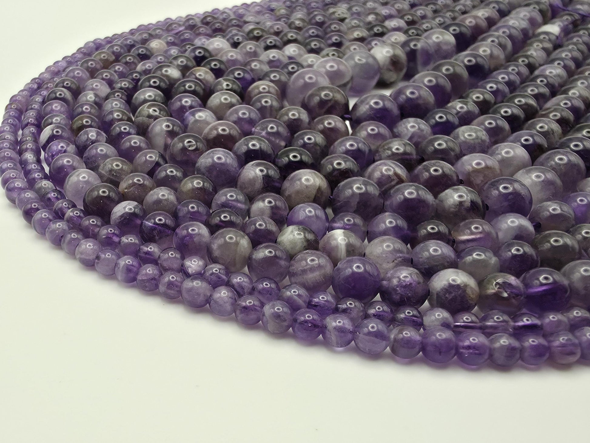 Natural AAA grade Amethyst beads sourced from Brazil, featuring classic purple tones with smooth polish and consistent quality. These quartz gemstone beads are ideal for jewellery making, bracelets, necklaces, and spiritual designs, offering timeless beauty and reliable durability.
