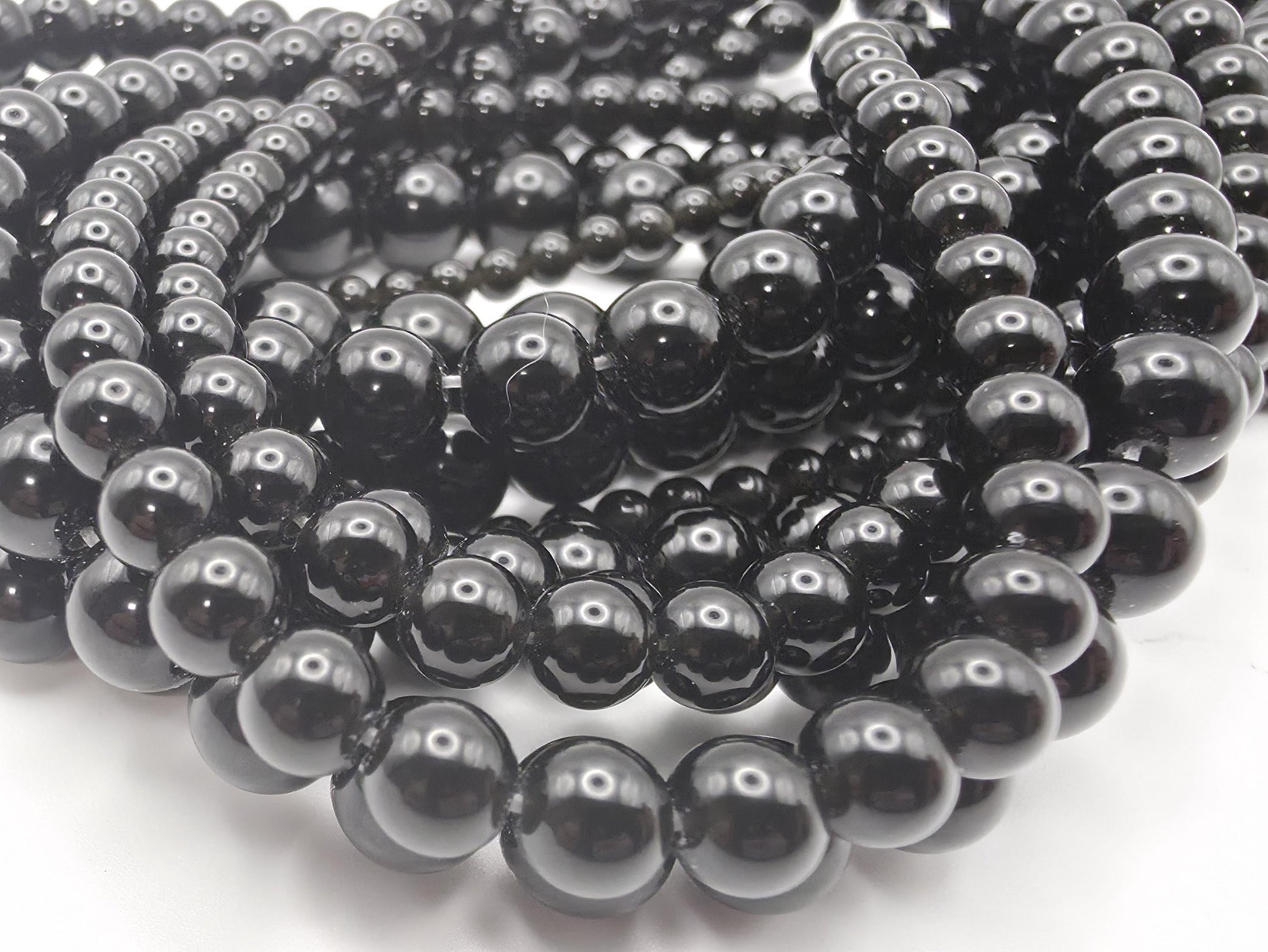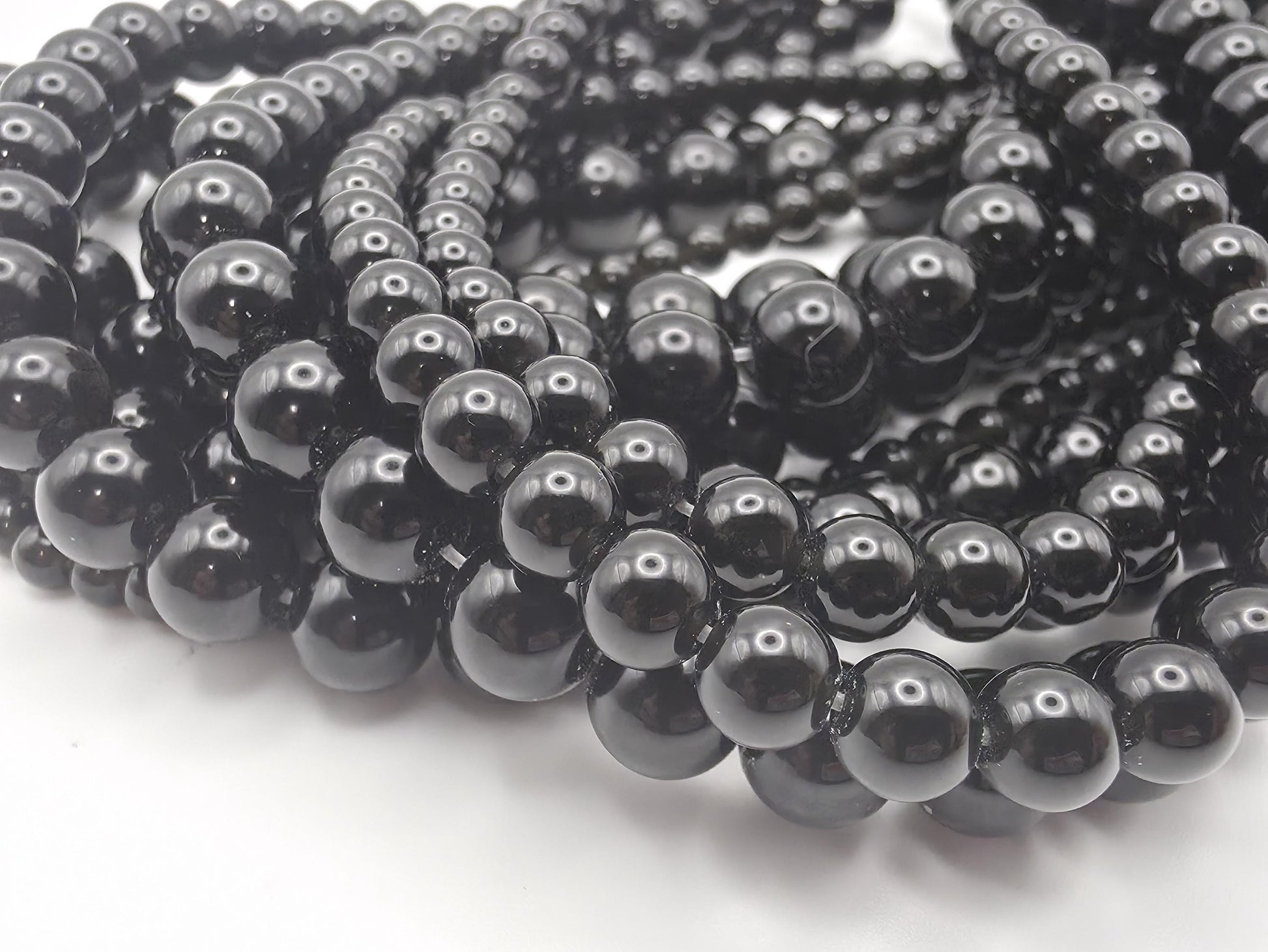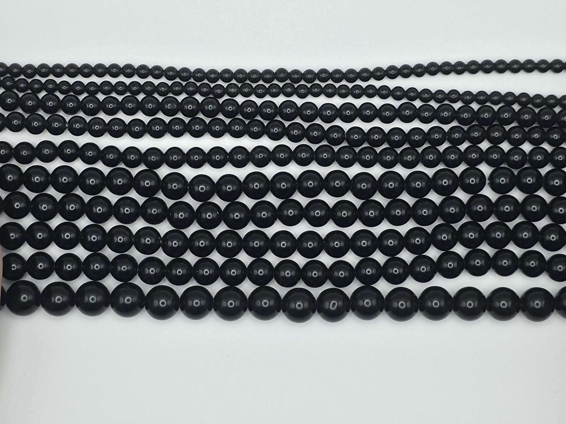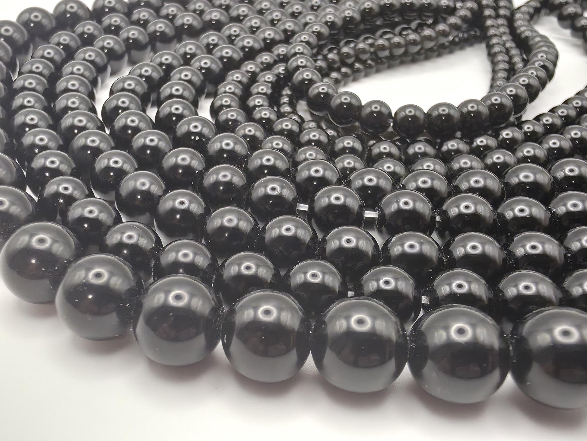 Natural AAA+ grade Black Onyx beads sourced from Brazil, featuring a deep black colour with a smooth, glass-like polish. These volcanic glass gemstone beads are ideal for jewellery making, bracelets, necklaces, and minimalist or protective designs, valued for their sleek appearance and durability.