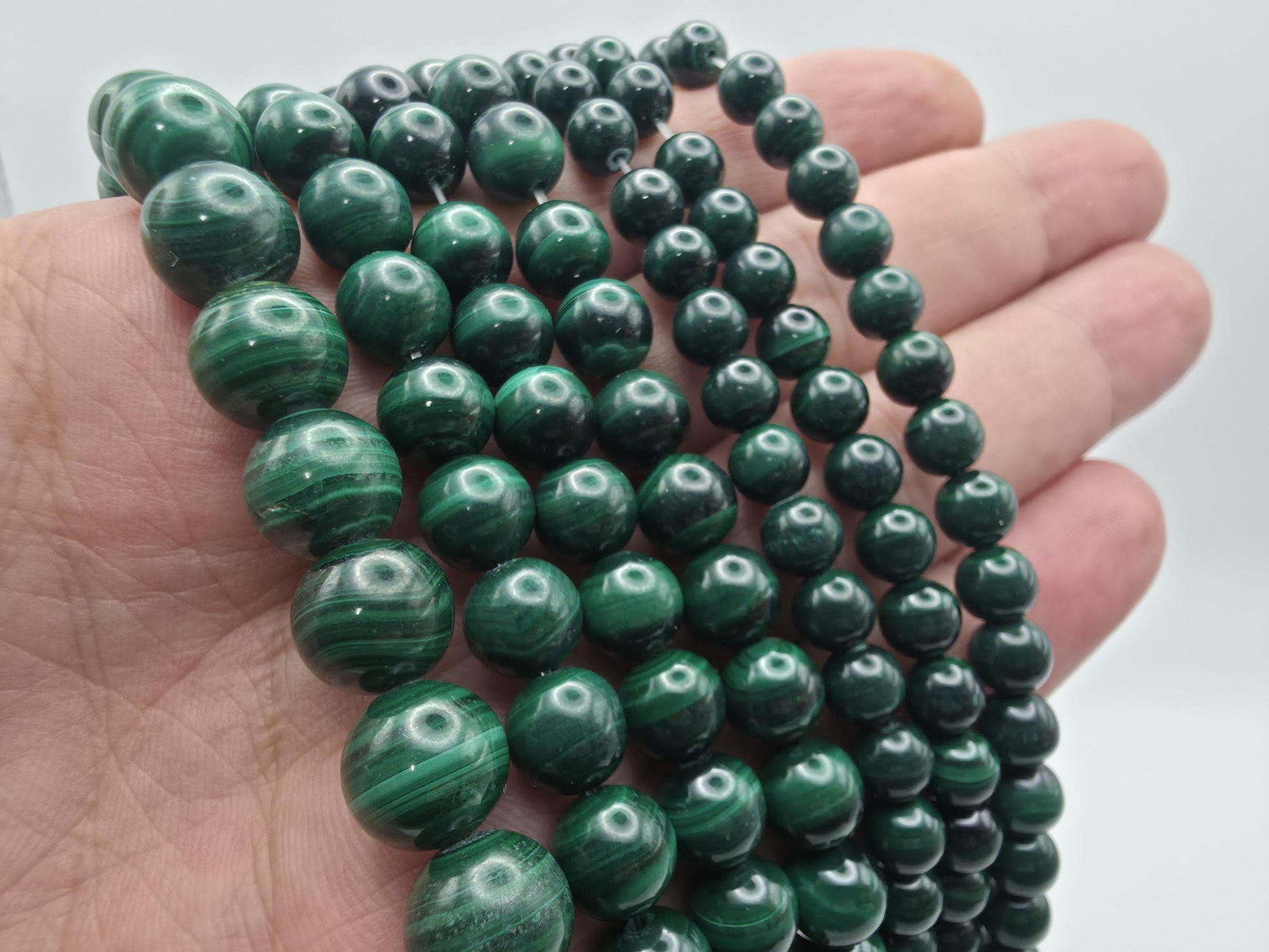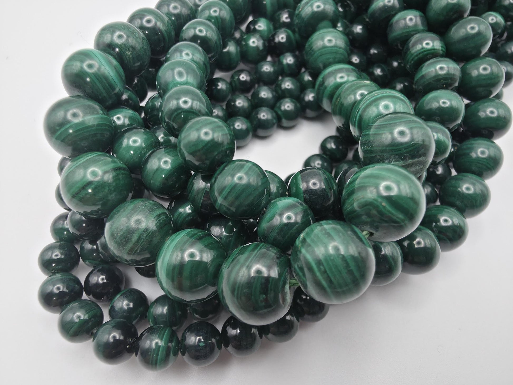 Premium AAA grade Malachite beads sourced from Australia, featuring intense green colour with distinctive natural banding and a high-polish finish. These striking gemstone beads are ideal for jewellery making, bracelets, necklaces, and bold statement designs, prized for their dramatic appearance and mineral richness.